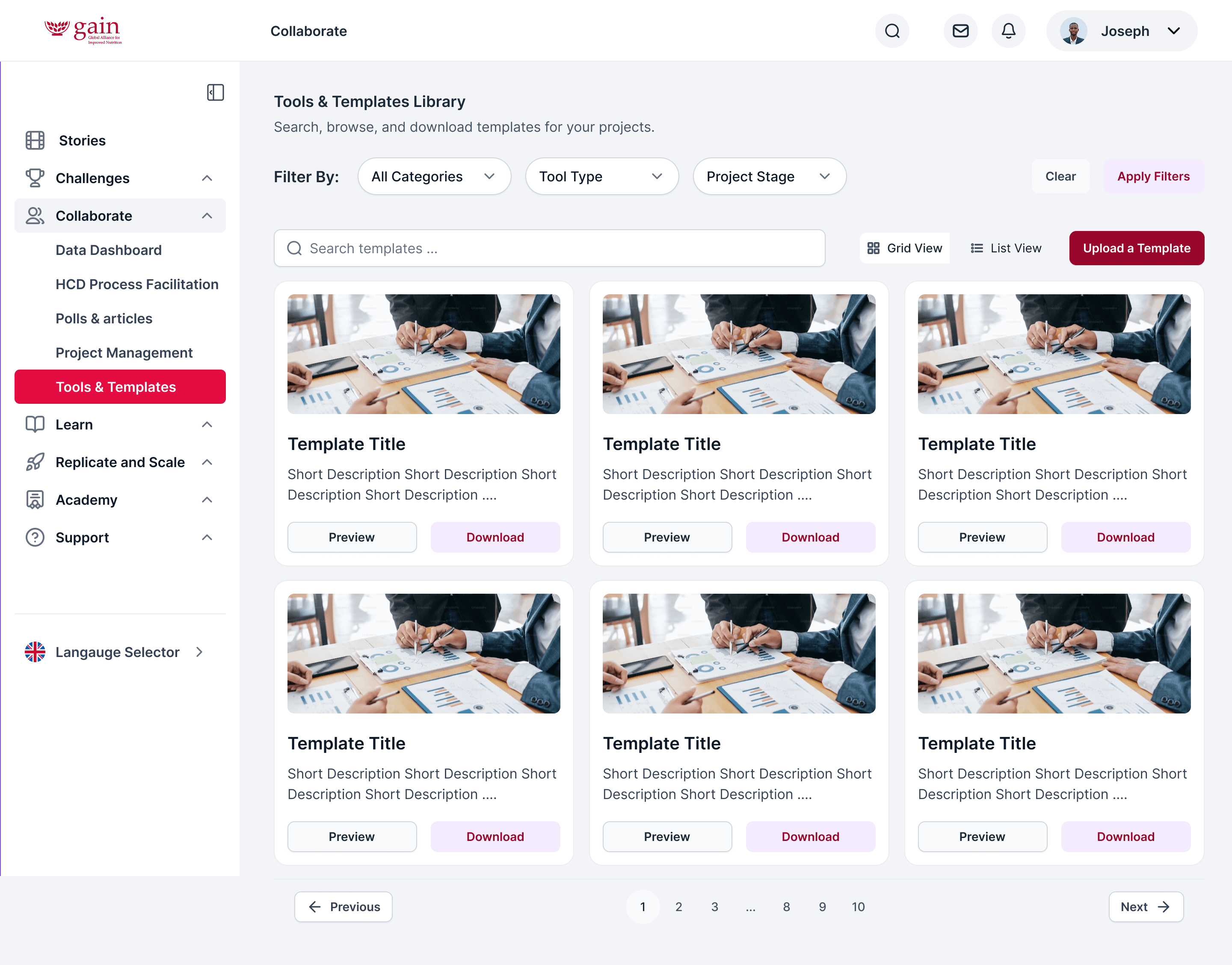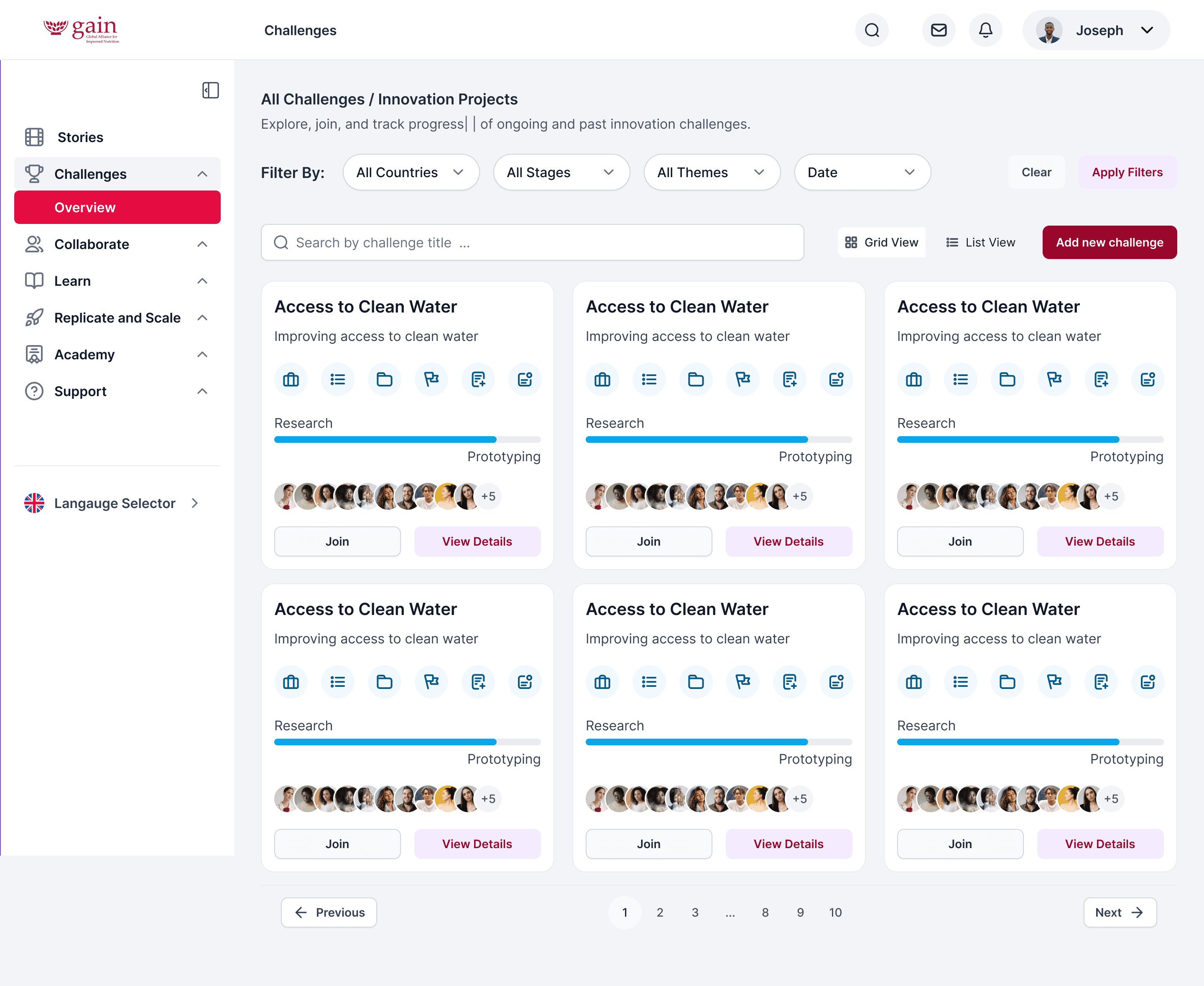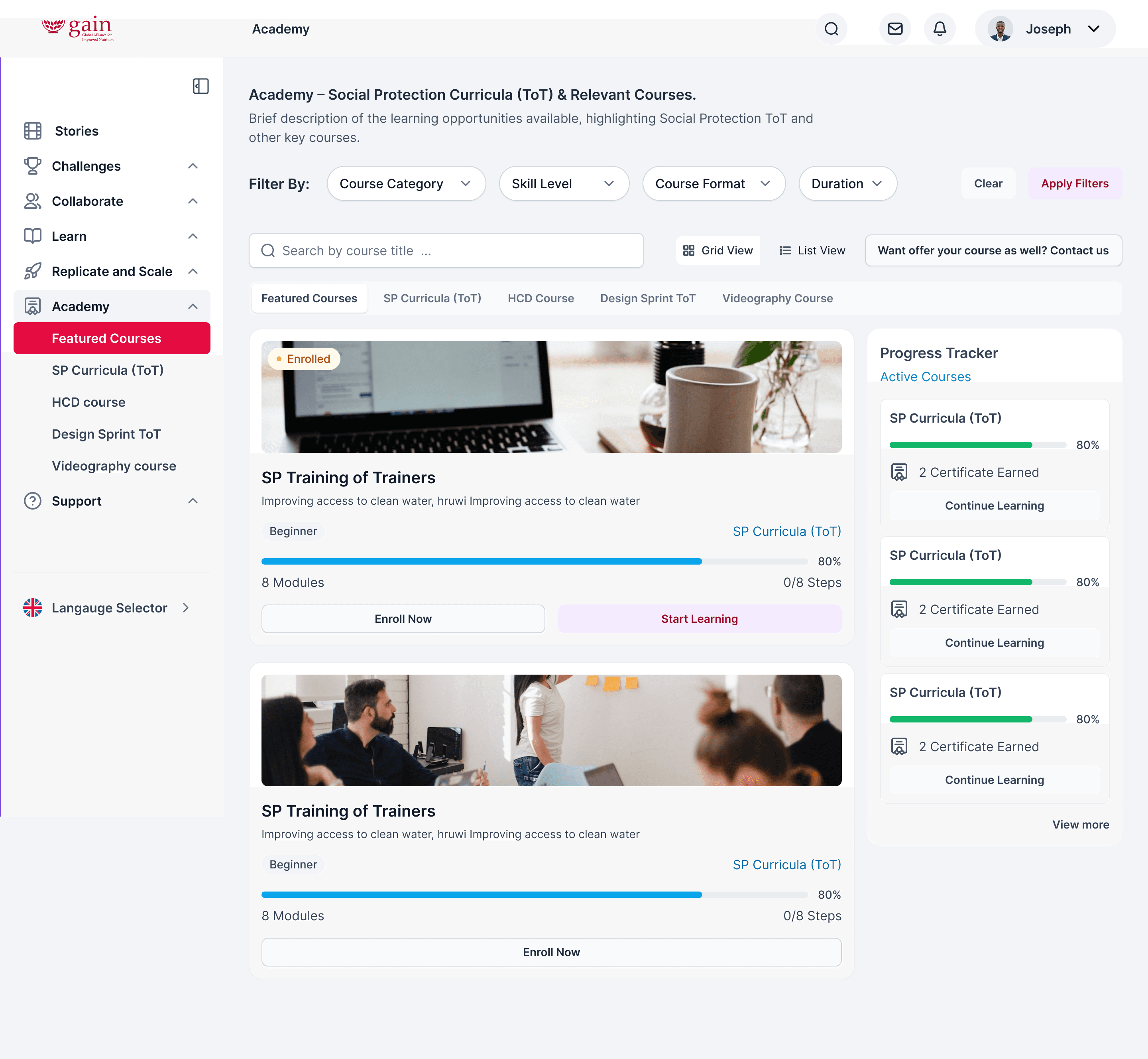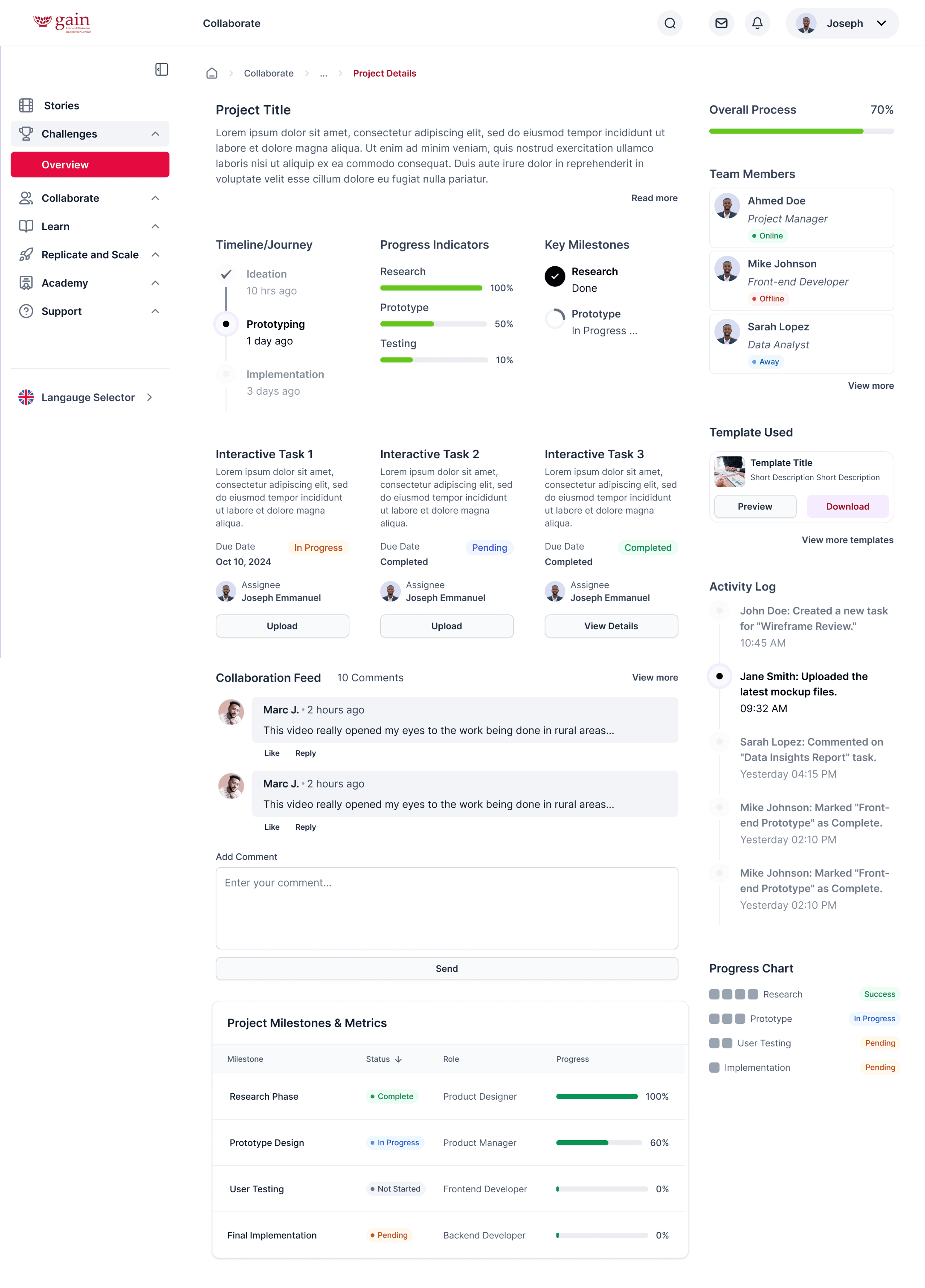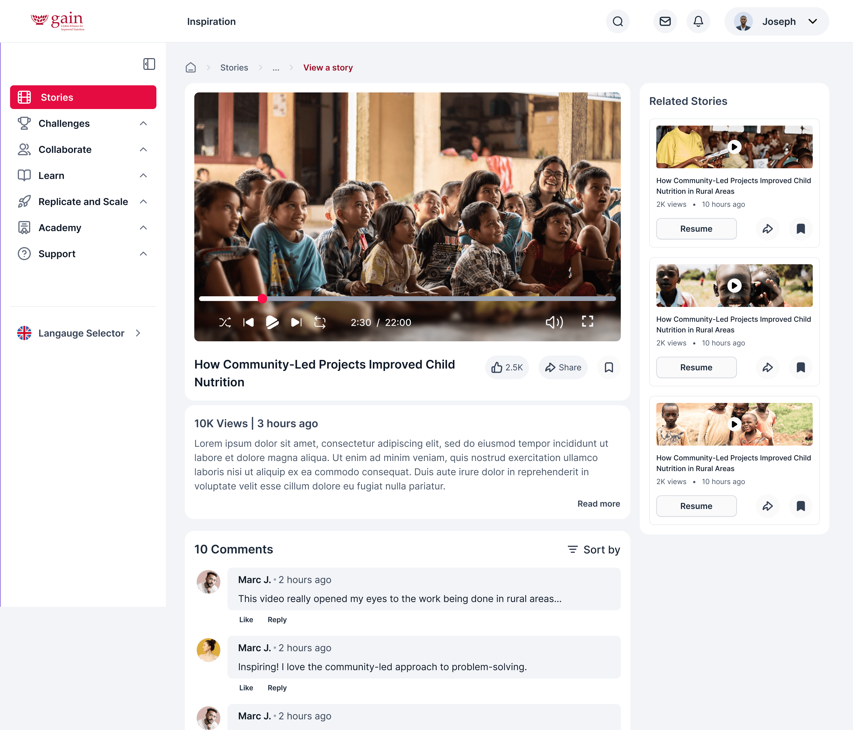 I and Proportion Global Team won the contract by the Global Alliance for Improved Nutrition (GAIN) in 2024 . I served as the Lead UI Designer for a high-stakes digital initiative. The goal was to bridge the gap between high-level government policy and grassroots innovation. I was responsible for the visual architecture of a space where policymakers, program leads, and field workers could co-create social protection systems across diverse tech infrastructures in Nigeria, Rwanda, Mozambique, India, Bangladesh and Ethiopia.