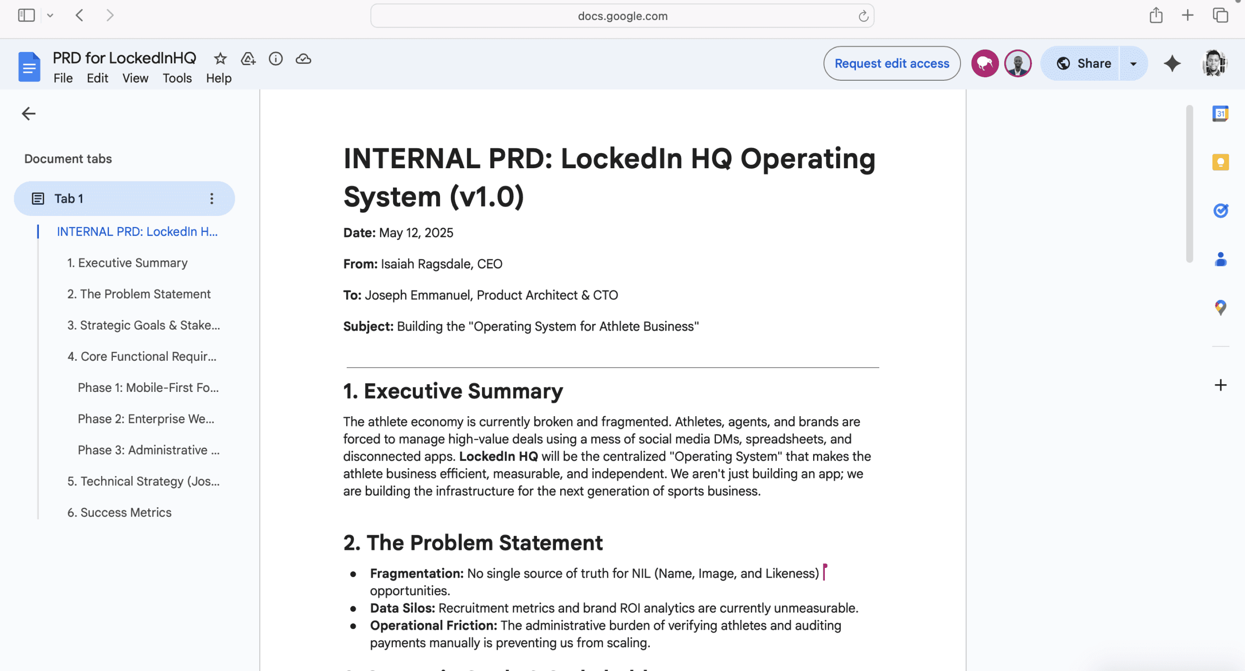 PRD I built in google docs to stay in touch with the stakeholders