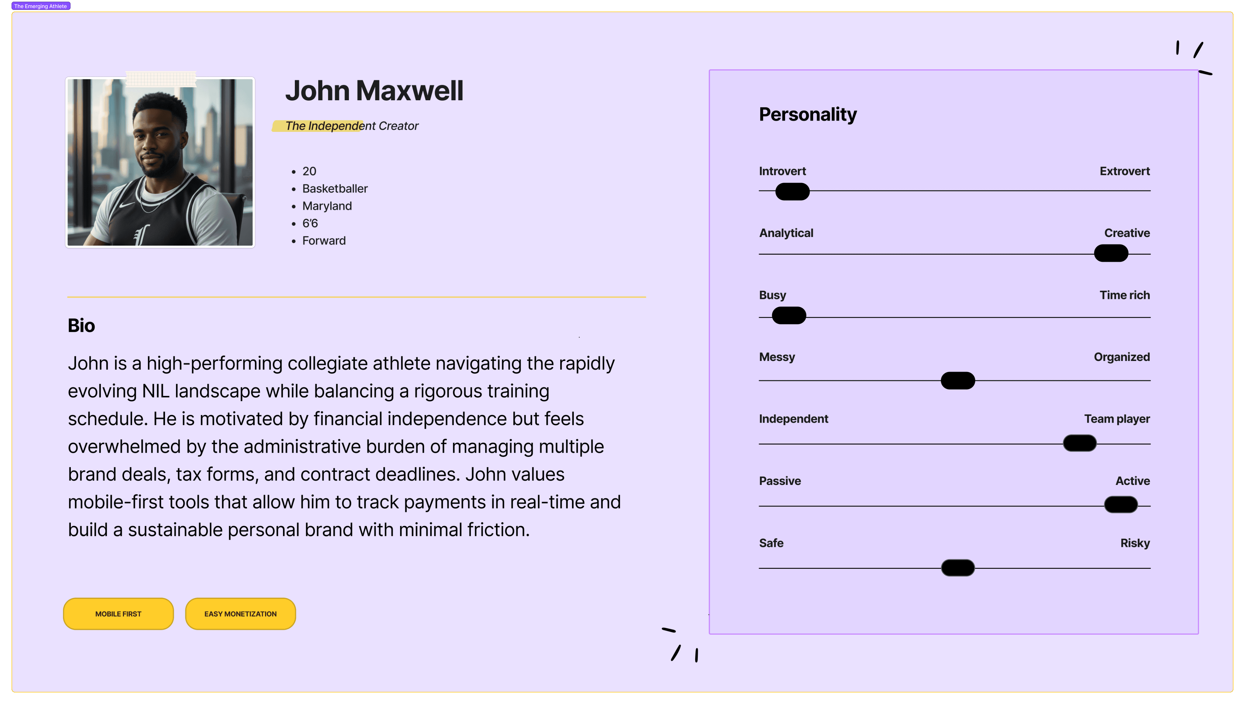 I led a deep-dive research phase into the "Athlete Journey" and "Recruiter Workflow" to identify critical friction points, using persona mapping to uncover gaps in athlete financial literacy and recruiter data transparency .
