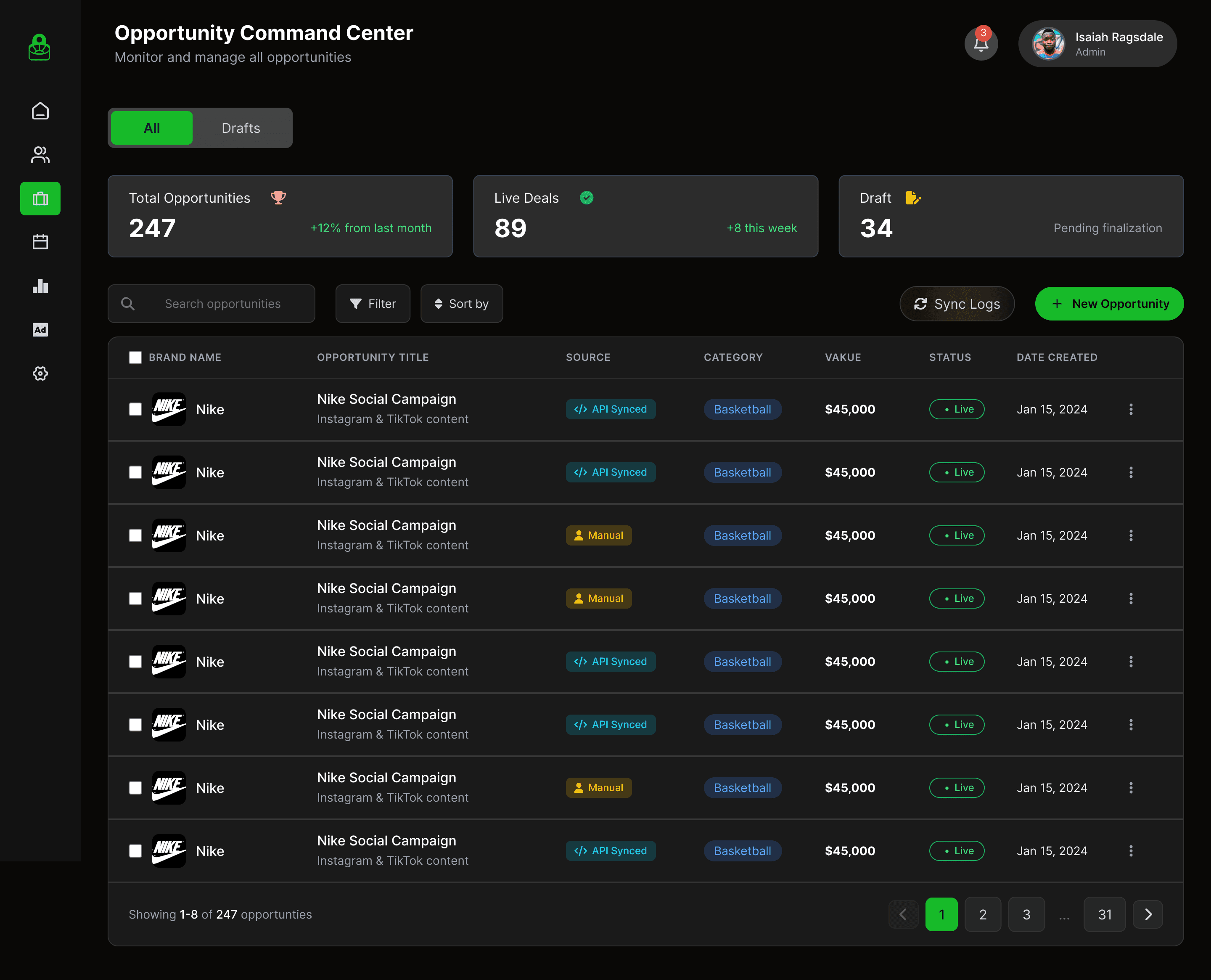 I transitioned the validated wireframes into a high-fidelity, cross-platform system designed to balance the high-energy environment of an athlete with the precision required by a brand agent. By architecting a "Control Tower" dashboard, I enabled recruiters to manage over $124.5K in revenue and 1,300+ active users through a single, scannable interface that prioritizes system alerts and pending verifications.